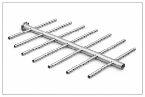 It is used where the complete vetting of packing bed is necessary and generally used in scrubbers, in the wash and circulating reflux. The distributor is designed to create overlapping circles of liquid, which ensures that the entire area below the distributor is covered in liquid. This distributor consists of a main header and laterals with downpipes and spray nozzles.