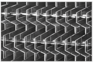 The high capacity vane pack mist eliminators use a hooked vane mechanism for higher capacity mist elimination. They offer efficient droplet removal and superior resistance to fouling, making them ideal for high-rate horizontal vapour flow.