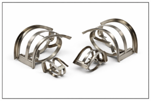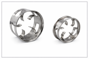These were developed by cutting windows in the Raschig rings and bending the window tongues inward. This opens up the rings, lowers their friction, and improves packing area distribution, wetting, and liquid distribution.