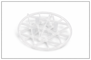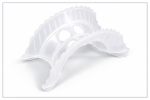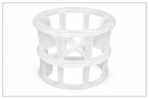 HMT-CR is third generation packings. These rings are similar to the Pall ring, but have an aspect ratio (height to diameter ratio) of 1:3, compared to 1:1 in the Pall ring. The lower aspect ratio orients the particles with their open side facing the vapor flow, thus reducing friction, and exposing more surfaces to mass transfer. HMT-CR is available in metal, plastic and ceramics.
